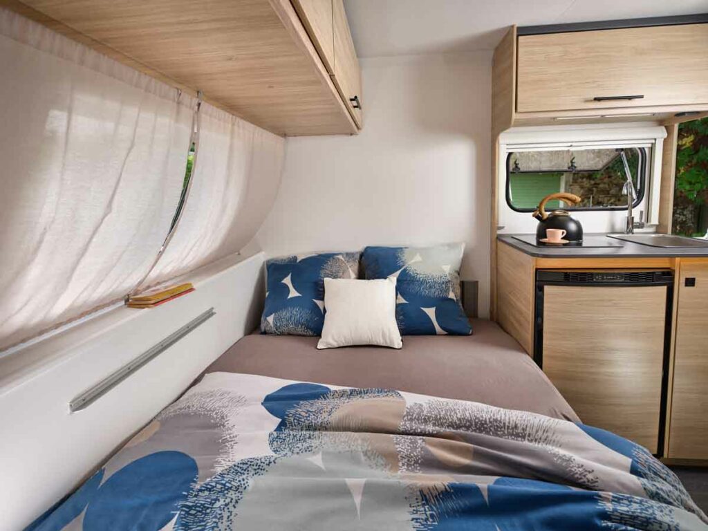 Nuova roulotte familiare 4 posti con un PTAC di soli 750 kg, dotata di attrezzature 100% elettriche. Inoltre, offre in esclusiva – e di serie – un nuovissimo concetto di connettività.